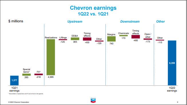Chevron Q1 2022 Earnings vs Q1 2021 (Chevron Q1 2022 Investor Presentation)