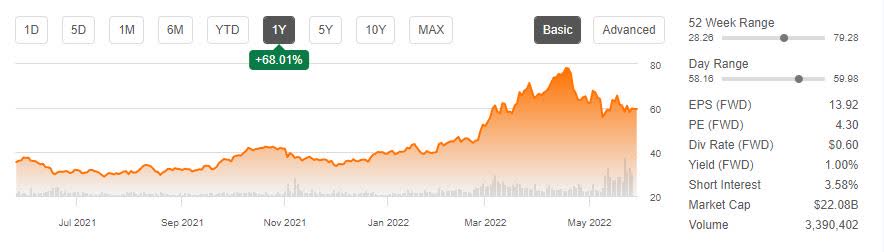 MOS 1yr Trading Chart (Seeking Alpha Premium)