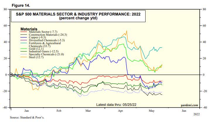 S&P 500 Materials Sector & Industry Performance: 2022 (Yardeni/S&P)